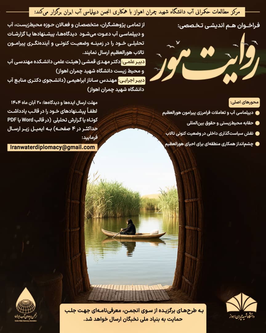 فراخوان عضویت در کمیته های تخصصی انجمن دیپلماسی آب ایران انجمن دیپلماسی آب ایران در راستای ارتقای جایگاه دیپلماسی آب کشور؛ فراهم کردن زمینه های پیوند افراد فرهیخته و فعال با سازمان ها و ارگان های مرتبط؛ برگزاری رویدادهای مرتبط با اهداف انجمن و تربیت نیروی انسانی متخصص از تمامی...